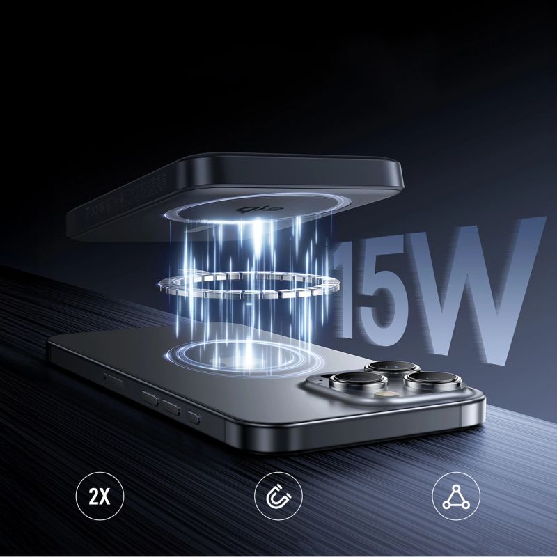 Najnowocześniejszy standard Qi2 zapewnia szybkie, stabilne i efektywne ładowanie, idealnie dopasowane do iPhone’ów 15–16.