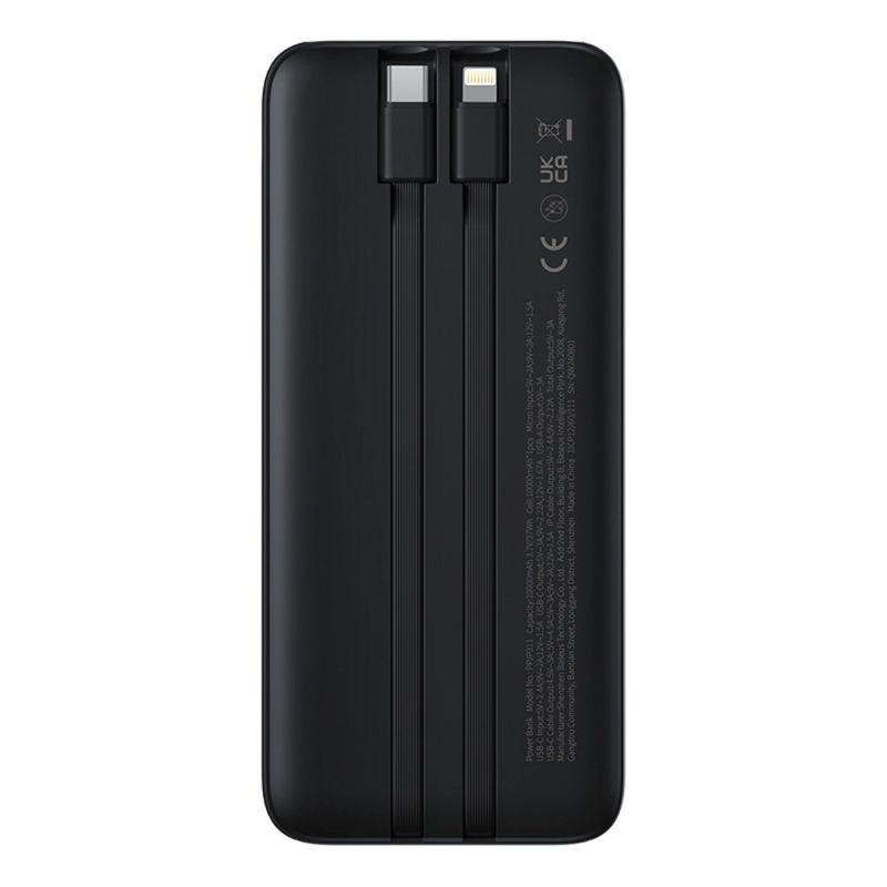 Powerbank Baseus Lipow 10000mAh 22.5W z podwójnym wbudowanym kablem z wyświetlaczem (z dodatkowym czarnym kablem Baseus Simple USB-A - USB-C 3A 0,2m) - czarny