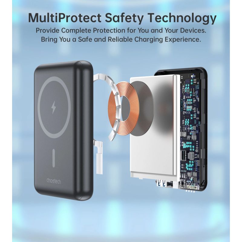 Złącza USB-C i USB-A oferują elastyczność podłączania różnorodnych urządzeń, od smartfonów po tablety, czyniąc powerbank marki Choetech B662 niezbędnymakcesorium w każdym domu i w podróży.