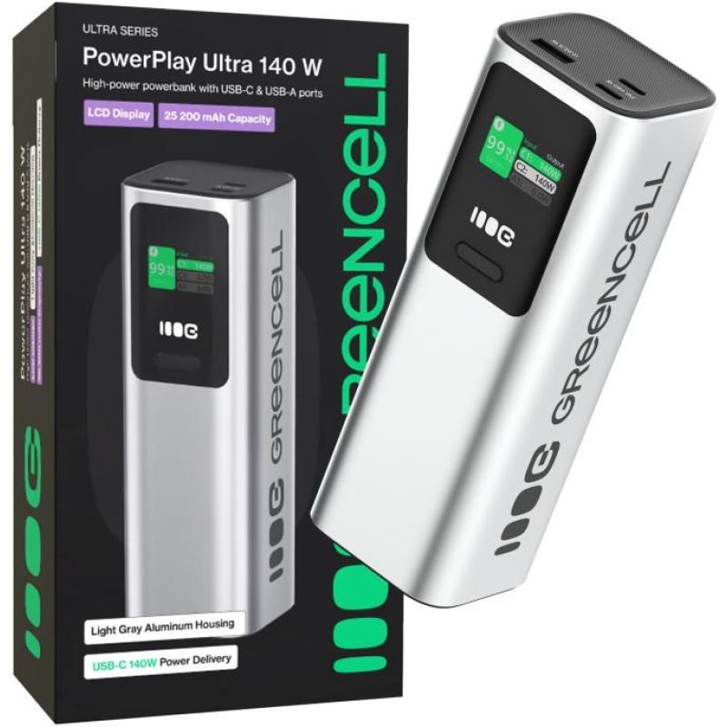 Powerbank Greencell PowerPlay Ultra 25200mAh Szybkie Ładowanie 140W 2x USB-C PD 1x USB-A