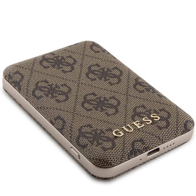 Powerbank indukcyjny Guess 4G Leather Metal Logo MagSafe 15W 5000mAh - brązowy