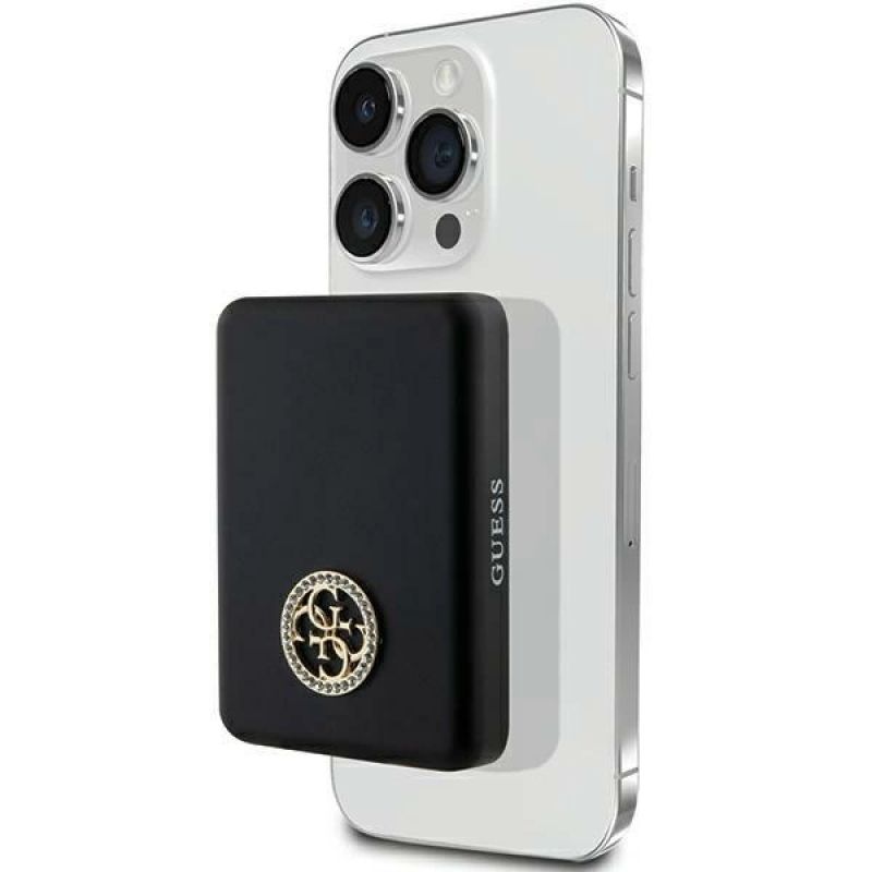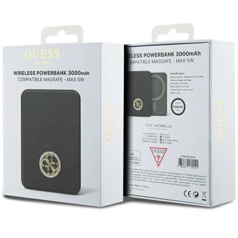 Powerbank indukcyjny Guess MagSafe 4G Strassed Metal Logo 5W 3000mAh - czarny