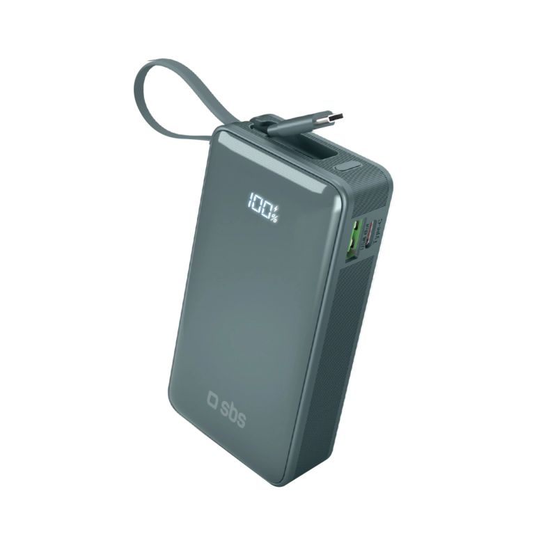 Powerbank SBS 10000 mAh 20W z wbudowanym kablem USB-C i wyświetlaczem cyfrowym - szary