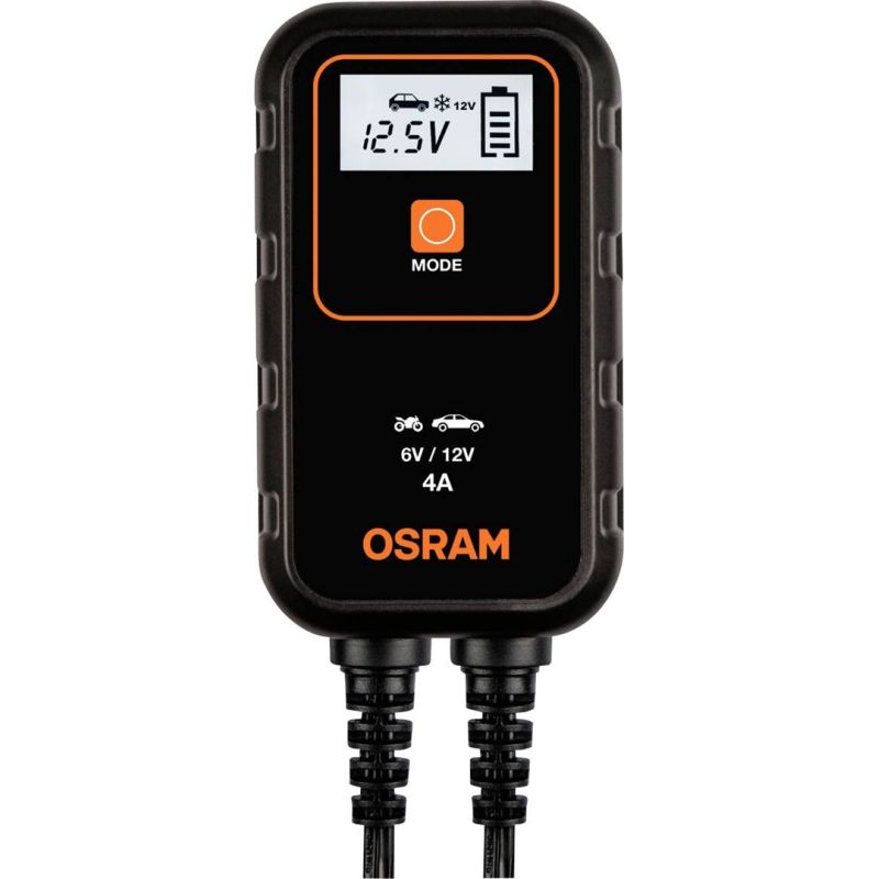 6. Prostownik BATTERYcharge 904, napięcie ładowania: 6/12 V OSRAM, prąd ładowania: 4A, napięcie zasilania: 230V, rodzaj akumulatora: AGM/Li-Ion/VRLA