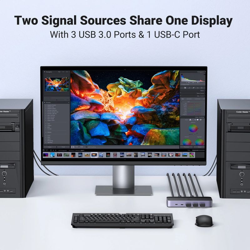 Dzięki przyciskowi na obudowie oraz pilotowi zdalnego sterowania przełącznik Ugreen CM664 umożliwia bezproblemowe przełączanie się między komputerami. To rozwiązanie jest nie tylko wygodne, ale także pozwala na szybkie i intuicyjne zarządzanie połączeniami, co znacząco ułatwia pracę.