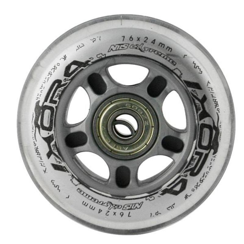 Kółka PU CLEAR NILS EXTREME są wykonane z poliuretanu. Najważniejszymi parametrami kółek są twardość oraz średnica. Twardość kółek decyduje zarówno o komforcie jazdy jak i o przyczepności do podłoża. Kółka PU-82A zapewniają dobrą amortyzację oraz doskonałą adaptację do każdej nawierzchni. Średnica kółek ma bezpośredni wpływ na szybkość jazdy. Kółka o większej średnicy umożliwiają osiąganie większych prędkości, jednak nie gwarantują tak dużej manewrowości jak kółka o mniejszej średnicy.