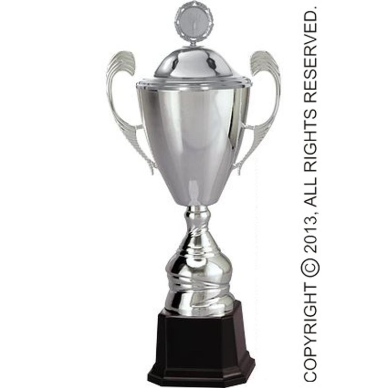 ? wysokość pucharu: 52 cm ? średnica kielicha: 18 cm ? kolor: srebrny ? materiał: plastik, metal ? wymiary tabliczki: 1,0x0,48 cm