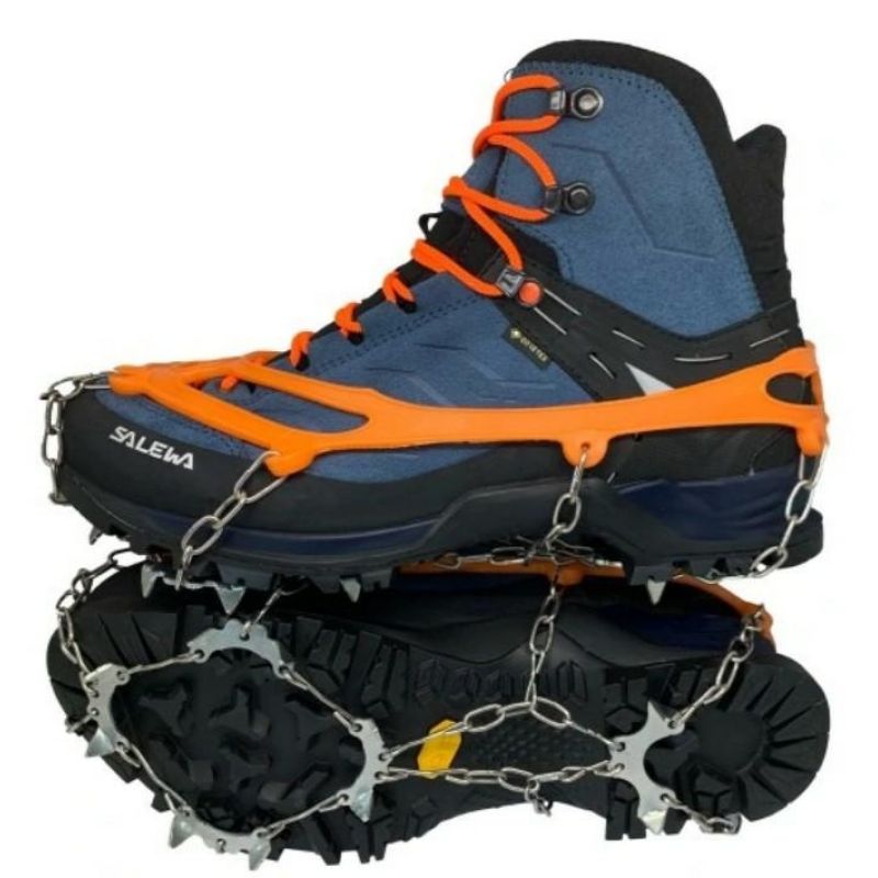 Nakładki posiadają elastyczny, gumowy kołnierz, który jest odporny na niskie temperatury. Dzięki niemu bez problemu dopasujesz raczki do obuwia w rozmiarze 38-45. Wystarczy je naciągnąć na podeszwę buta, dopasować aby dobrze przylegały i są gotowe do użycia. Nie trzeba się martwić o obuwie, gdyż dzięki materiałowi z którego są wykonane, ładnie przylegają i nie niszczą obuwia.