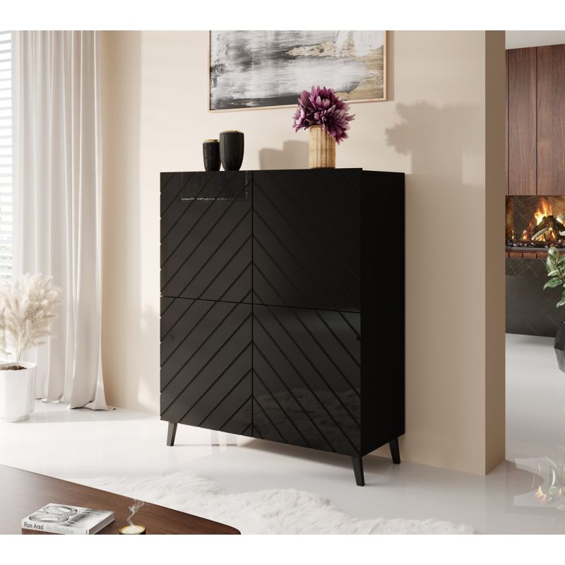 4. Regał ABETO 100,5x40xH121,5 czarny/czarny połysk
