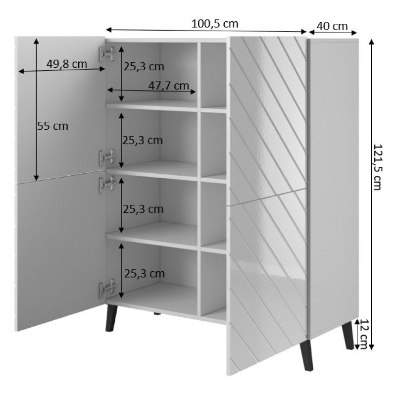 3. Regał ABETO 100,5x40xH121,5 czarny/czarny połysk
