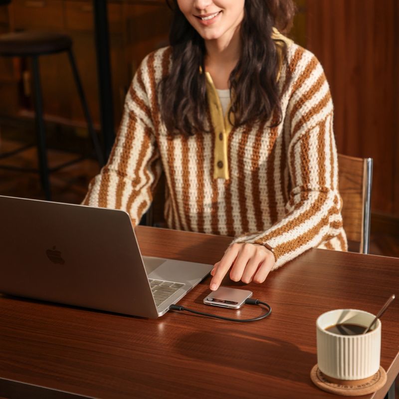 - Zawartość opakowania: rejestrator, kabel USB-C - USB-C, adapter USB-C - USB-A, pierścień magnetyczny