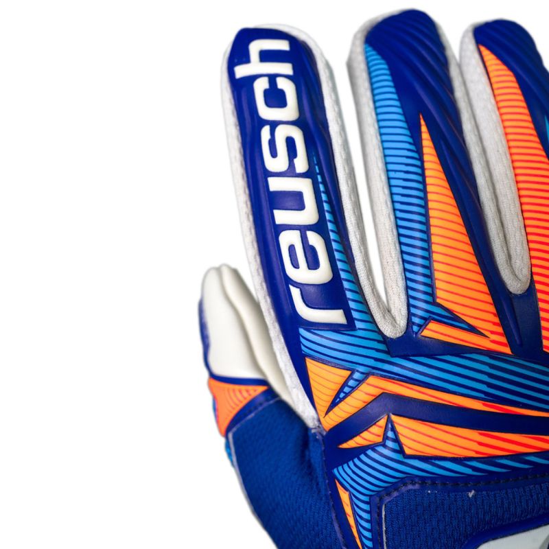 Rękawice bramkarskie Reusch Attrakt Advance niebieskie 5670215 4126 Męskie rękawice bramkarskie Reusch sprawdzą się zarówno podczas treningów, jak i meczów. Dłoń wykonana z lateksu Reusch Grip Advance zapewnia pewny chwyt i odporność na ścieranie. Dane techniczne:· Materiał: 35% PVC, 34% poliester, 25% latks, 3% poliuretan, 2% guma 1% bawełna· Expanse Cut - rodzaj cięcia najbardziej znany z zewnętrznych szwów i szerszych końcówek palców, które odpowiadają za zwiększenie powierzchni chwytnej rękawicy · Preshaped Construction czyli anatomiczny kształt rękawicy oraz lekko rozłożone palce zwiększają komfort noszenia i wspierają naturalną pozycję chwytania· Thumbflex™ specjalne wstawki materiałowe zwiększają elastyczność i ruchomość kciuka, w żadnym wypadku nie ograniczając jego ruchów, dodatkowo wspomagając kontakt z piłką · AirVentSystem™ – wysoce oddychający materiał siatkowy zapewniający optymalną cyrkulacje powietrza w rękawicy, zapewniając maksymalną wentylację dłoni· System 3D Thumb Crotch czyli zawijany panel pomiędzy kciukiem a palcem wskazującym ma znaczący wpływ na komfort· Thumb Wrap czyli lateks owinięty wokół kciuka, aby powiększyć obszar chwytu i nadać mu ergonomiczny kształt