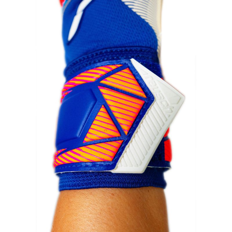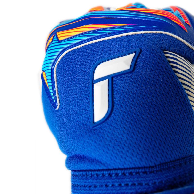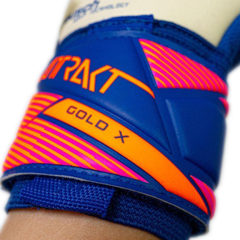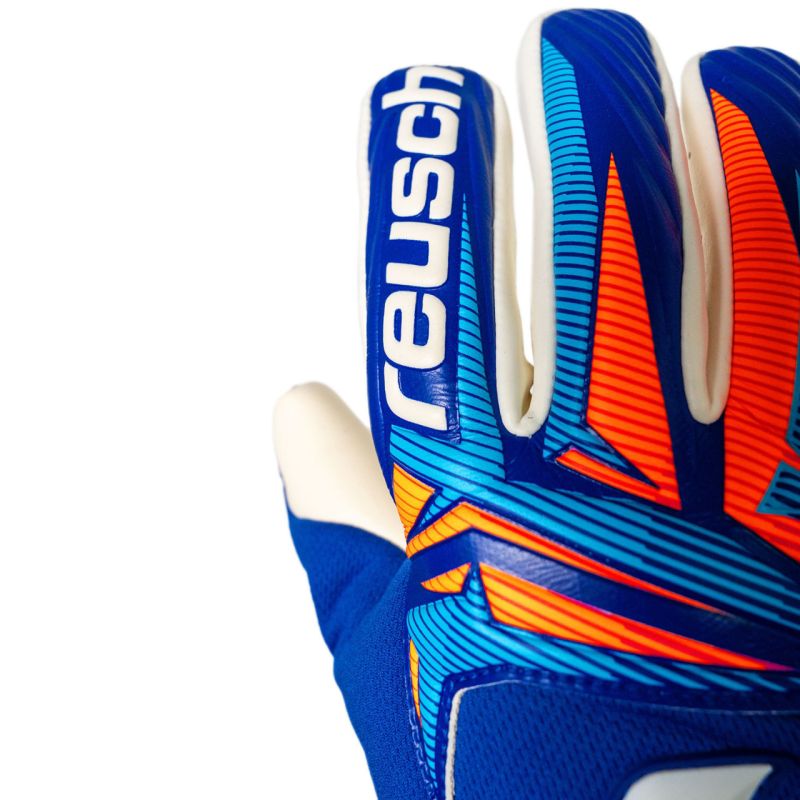 Rękawice bramkarskie Reusch Attrakt Gold X NC niebieskie 5670955 4126 Rękawice bramkarskie męskie Reusch pozwolą uzyskać koordynację, refleks i zwinność podczas obrony. Krój Evolution Negative Cut otula palce lateksem, zapewniając maksymalny obszar kontaktu z piłką. Pianka Grip Gold X oferuje bezkonkurencyjną przyczepność w każdych warunkach oraz zwiększoną odporność na ścieranie, dzięki specjalnym cząsteczkom kleju wzmacniającym strukturę lateksu. Siateczkowe panele. Mankiet regulowany za pomocą rzepu. Rękawice to pierwszy wybór większości zawodowych bramkarzy. Dane techniczne:· Materiał: 59% lateks, 28% poliester, 5% poliuretan, 5% poliamid, 3% PVC· Negative Cut – to krój ze szwami wewnętrznymi w dolnej części palców, który zapewnia ciasne, miękkie, elastyczne i ergonomiczne dopasowanie. Lateks jest zawijany wokół opuszków palców, co przekłada się na ciasne dopasowanie, dobra kontrolę nad piłką i maksymalny obszar kontaktu dłoni z piłką· AirVentSystem™ – wysoce oddychający materiał siatkowy zapewniający optymalną cyrkulacje powietrza w rękawicy, zapewniając maksymalną wentylację dłoni· Preshaped Construction czyli anatomiczny kształt rękawicy oraz lekko rozłożone palce zwiększają komfort noszenia i wspierają naturalną pozycję chwytania· System 3D Thumb Crotch czyli zawijany panel pomiędzy kciukiem a palcem wskazującym ma znaczący wpływ na komfort· Double Thumb Wrap - lateks dodatkowo umieszczony w górnej i bocznej części kciuka, aby powiększyć obszar chwytu i nadać mu ergonomiczny kształt· Side Wrap - lateks rękawic został naniesiony dodatkowo na bok rękawic, zwiększając ich obszar chwytu piłki oraz poprawiając dopasowanie do dłoni