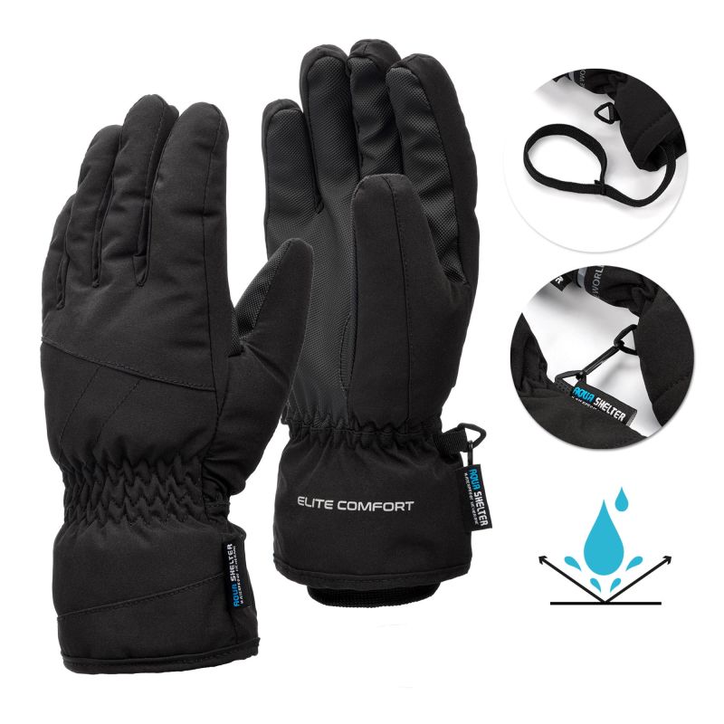 Ergonomia – mankiet i gumki na nadgarstkach zabezpieczają wnętrze rękawic przed przedostaniem się chłodu i śniegu z zewnątrz. Sprawiają, że rękawice pozostają na swoim miejscu i nie zsuwają się z dłoni.