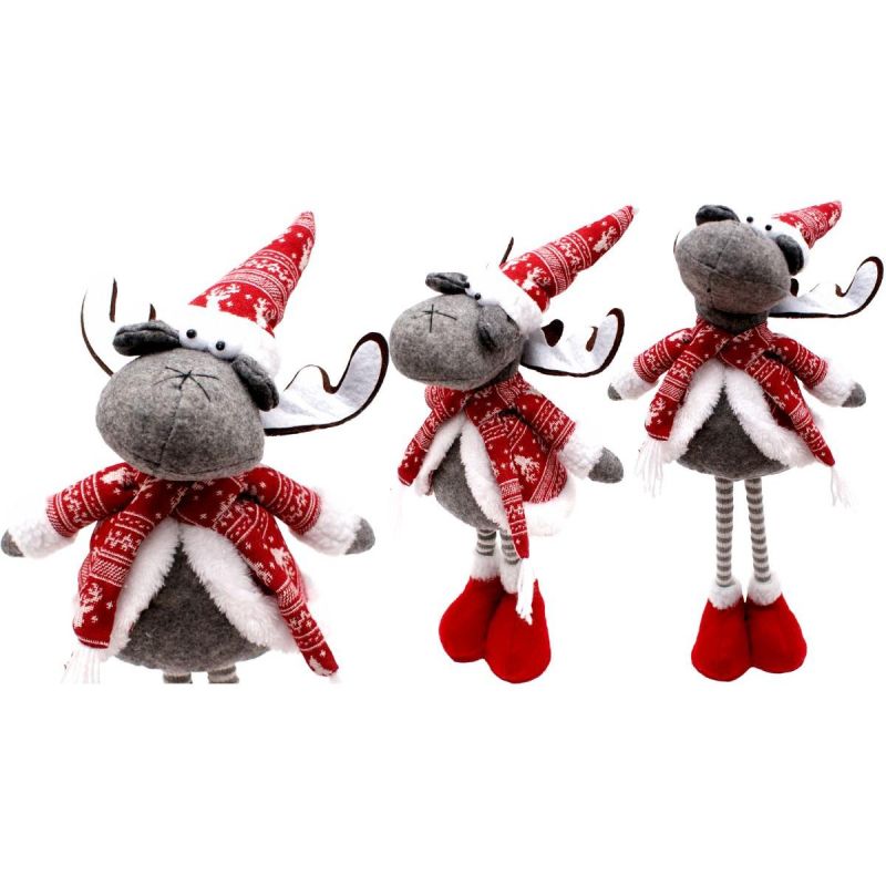 RENIFER DEKORACYJNY NA TELESKOPOWYCH NOGACH 45-60CM CZERWONY
