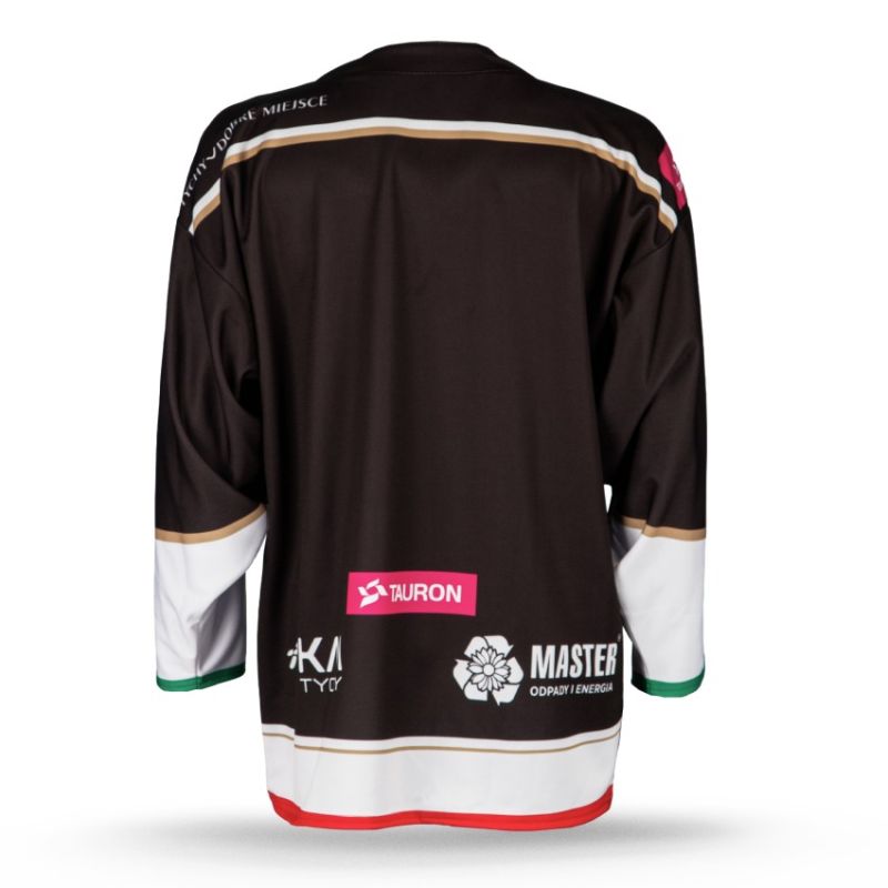 Replika bluzy meczowej GKS Tychy 25/26 Replika bluzy meczowej GKS Tychy 25/26 to obowiązkowy element garderoby każdego fana drużyny, który chce poczuć się jak zawodnik na lodzie. Główne cechy: Unikalny design: Czarna i biała bluza z dużym herbem GKS Tychy na froncie, ozdobiona klubowymi barwami – zielenią, czernią, czerwienią i złotymi akcentami. Dodatkowe logotypy sponsorów nadają jej autentycznego, meczowego charakteru. Wysoka jakość materiału: Wykonana z lekkiego, przewiewnego i wytrzymałego materiału, zapewnia komfort podczas noszenia i kibicowania. Oficjalna replika sezonu 25/26: Bluza odzwierciedla oryginalne stroje zawodników, dzięki czemu każdy kibic może poczuć atmosferę prawdziwego meczu. Replika bluzy meczowej GKS Tychy 25/26 to idealny wybór dla wiernych fanów drużyny – zarówno na trybuny, jak i na co dzień. Jeśli chcesz uczynić swoją bluzę jeszcze bardziej wyjątkową, istnieje możliwość spersonalizowania jej poprzez dodanie imienia, nazwiska i numeru zawodnika. Usługa ta jest dostępna za dodatkową opłatą 50 zł. Wystarczy dodać produkt "Personalizacja odzieży A3" do koszyka i wpisać tekst oraz numer w uwagach do zamówienia. Bluza jest dostępna w rozmiarach Junior i Senior, aby każdy fan mógł znaleźć odpowiednią dla siebie. Niech bluza GKS Tychy 25/26 stanie się znakiem rozpoznawczym prawdziwego kibica! Ze względu na to, że spersonalizowana bluza jest realizowana jako dodatkowa usługa na indywidualne zamówienie klienta. Taka bluza nie podlega zwrotowi! Prosimy o przemyślane projekty przed złożeniem zamówienia sublimacji.
