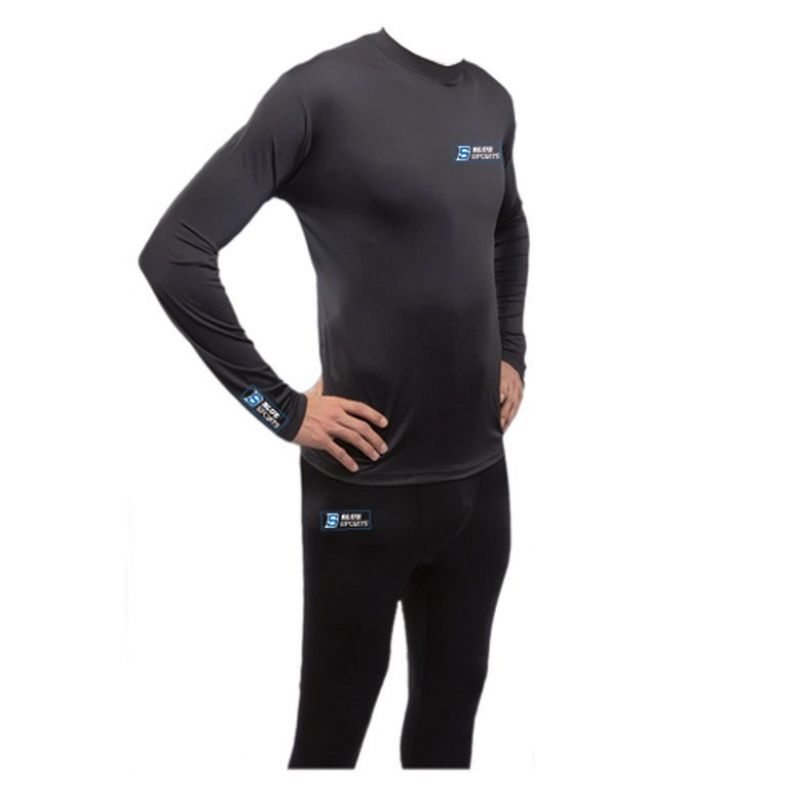 Asortyment marki Blue Sport to akcesoria, dodatki i podstawowe elementy ubioru każdego hokeisty. Kolor: Black. Dwuczęściowa bielizna ribano (koszulka + spodnie) Materiał: Odprowadzający wilgoć poliester i spandex. Kompresyjna budowa. Płaskie szwy dla komfortu. Możliwość prania w pralce.