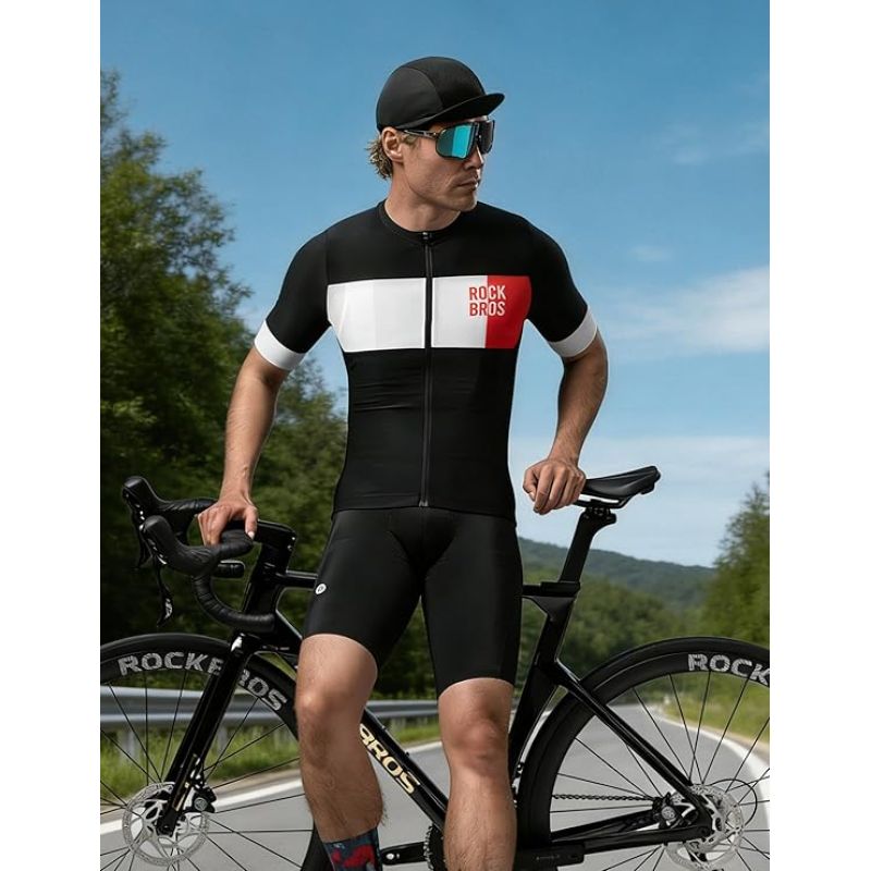 Oddychająca i szybkoschnąca tkanina: wyprodukowana z 90% poliestru i 10% elastanu dla głównego materiału oraz 85% poliestru i 15% elastanu na przód i rękawy. Oddychająca i szybkoschnąca tkanina sprawia, że ciało pozostaje suche i przyjemne podczas jazdy na rowerze