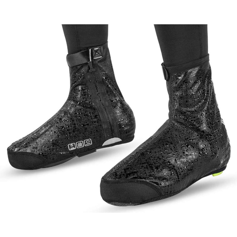 Wodoodporne ochraniacze na buty rowerowe. Można ich używać cały rok. Wysoce elastyczny materiał, lekko ocieplony od wewnętrznej strony, zapewnia ochronę przed błotem, piaskiem, wilgocią oraz wiatrem.