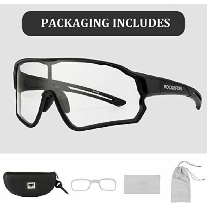 Uniwersalne okulary sportowe marki Rockbros, które świetnie sprawdzą się zarówno do jazdy na rowerze, biegania i innych aktywności sportowych. Dzięki zastosowaniu soczewek fotochromowych, przyciemniają się automatycznie w zależności od warunków oświetlenia.