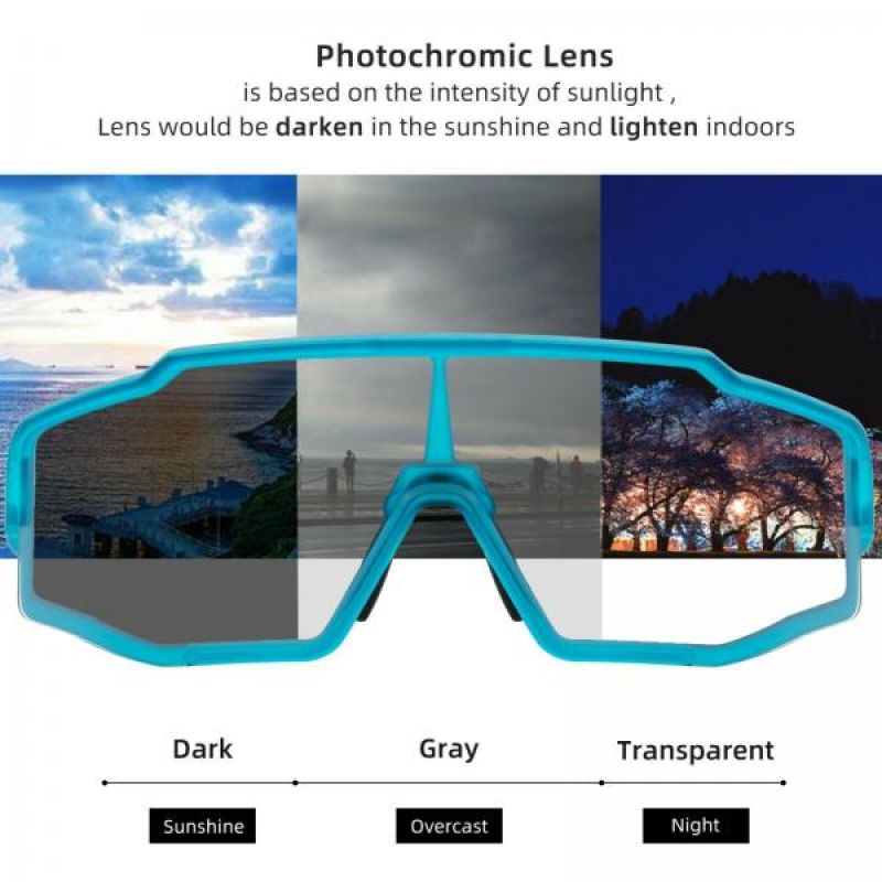 Uniwersalne okulary sportowe marki Rockbros, które świetnie sprawdzą się zarówno do jazdy na rowerze, biegania i innych aktywności sportowych. Dzięki zastosowaniu soczewek fotochromowych, przyciemniają się automatycznie w zależności od warunków oświetlenia.