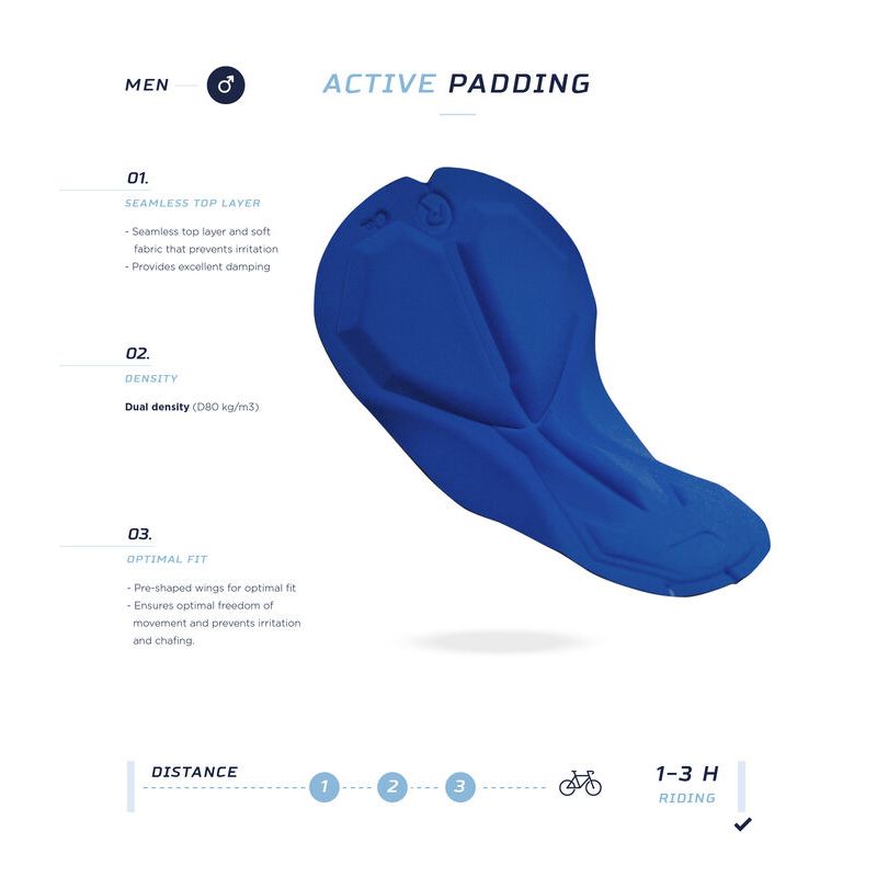 • ergonomiczny kształt wkładki Active na krótsze i średnie dystanse – do 3 godzin w siodle