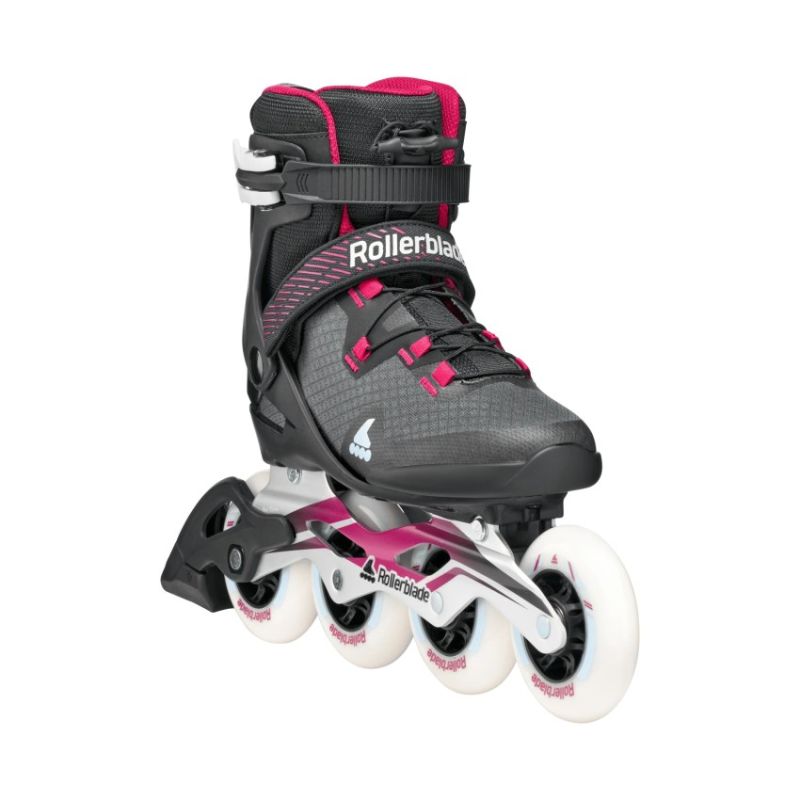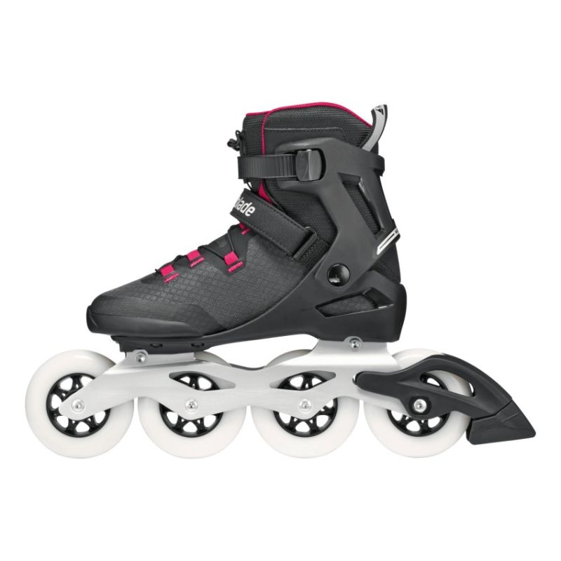 Rolki Rollerblade Macroblade 90 W '26 Szybkość, komfort i stabilność w jeździe fitness Rollerblade Macroblade 90 W to model stworzony dla kobiet, które chcą zrobić kolejny krok w rozwoju jazdy na rolkach. Kółka o średnicy 90 mm zapewniają większą prędkość i płynność jazdy, jednocześnie pozostając łatwe do kontrolowania, dzięki czemu rolki świetnie sprawdzają się zarówno w treningu fitness, jak i rekreacyjnych przejażdżkach. Model został wyposażony w nowoczesną cholewkę z technicznej siatki, która zapewnia bardzo dobrą wentylację oraz komfort dopasowania podobny do skarpety. Wyższa konstrukcja buta poprawia stabilność, a system Footboard Sizer umożliwia regulację przestrzeni wewnątrz rolki, pozwalając dopasować ją bardziej sportowo lub zwiększyć komfort. Główne cechy: Stabilna konstrukcja Macroblade: Wyższy cuff zapewnia lepsze wsparcie boczne i stabilność podczas jazdy. Cholewka z technicznej siatki: Oddychający materiał poprawia wentylację i zapewnia wysoki komfort użytkowania. System Footboard Sizer: Regulowana wkładka umożliwia dopasowanie przestrzeni w bucie do indywidualnych preferencji. System zapinania: Klamra, pasek 45° powerstrap oraz sznurowanie stabilizują stopę i poprawiają kontrolę jazdy. Aluminiowa płoza Twinblade: Lekka i wytrzymała konstrukcja zapewniająca skuteczny transfer energii i stabilność przy większych prędkościach. Kółka Rollerblade Performance 90 mm / 85A: Zapewniają szybkie, płynne toczenie oraz dobry balans między prędkością a kontrolą. Łożyska SG9: Wysokiej jakości łożyska gwarantujące bardzo płynną i dynamiczną jazdę. Rollerblade Macroblade 90 W '26 to idealne rolki fitness dla kobiet, które chcą połączyć komfort, stabilność i większą prędkość podczas jazdy rekreacyjnej oraz treningowej. Specyfikacja techniczna Przeznaczenie Rolki rekreacyjne / rolki fitness Skorupa / cholewka Macroblade – materiał 3D Mesh zapewniający dobrą wentylację i dopasowanie Płoza Twinblade Alu – aluminiowa płoza, maksymalny rozmiar kół 90 mm, długość 280 mm / 11" Kółka Rollerblade 90 mm / 84A Łożyska SG9 Hamulec Zamontowany na rolce System zapinania Klamra cuff, pasek 45°, szybkie sznurowanie (speed laces) Liner (but wewnętrzny) Performance PSI z systemem Footboard Sizer umożliwiającym regulację dopasowania