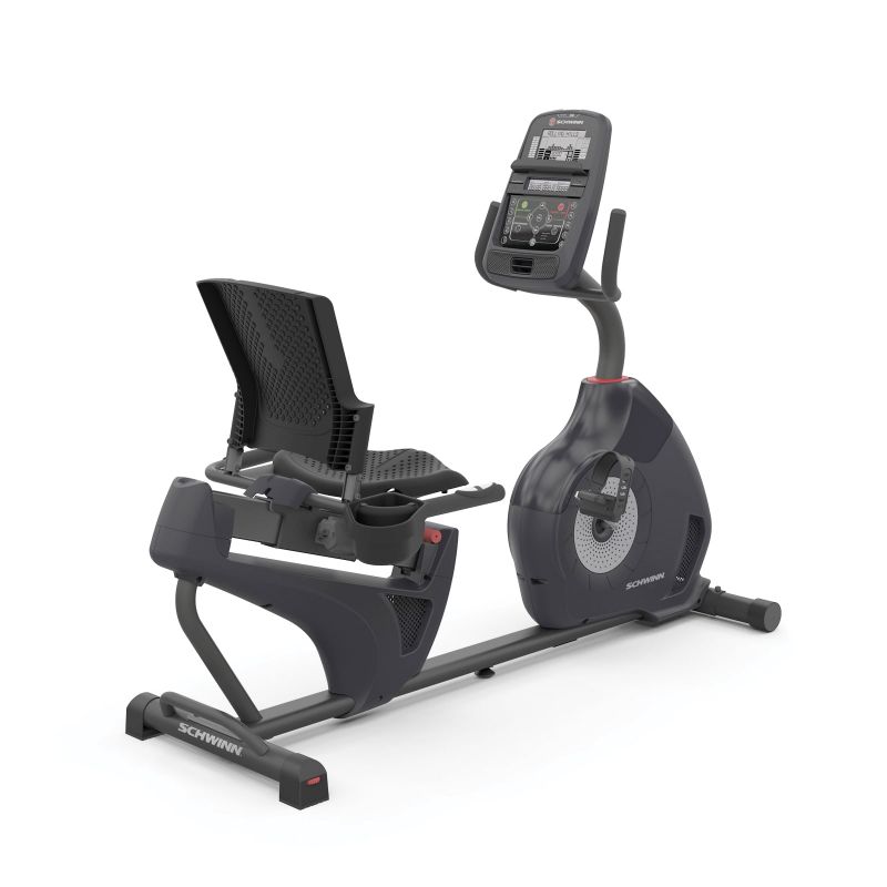 Rower Poziomy Programowany Schwinn 230i to rower marki Schwinn, jednego z liderów rynku fitness w USA. Sprzęt został wyposażony między innymi w 22 zróżnicowane programy treningowe, aż 20 poziomów oporu magnetycznego, 7 kg koło zamachowe oraz elegancki i stylowy wygląd. Rower posiada także wszelkie niezbędne akcesoria oraz dodatki, które uczynią trening przyjemnym i komfortowym, w tym głośniki z możliwością podłączenia Mp3, port USB z możliwością ładowania urządzeń, tackę na akcesoria, uchwyt na bidon, wentylator z 3 poziomami regulacji natężenia nawiewu, a także kółka transportowe do wygodnego przemieszczania sprzętu.