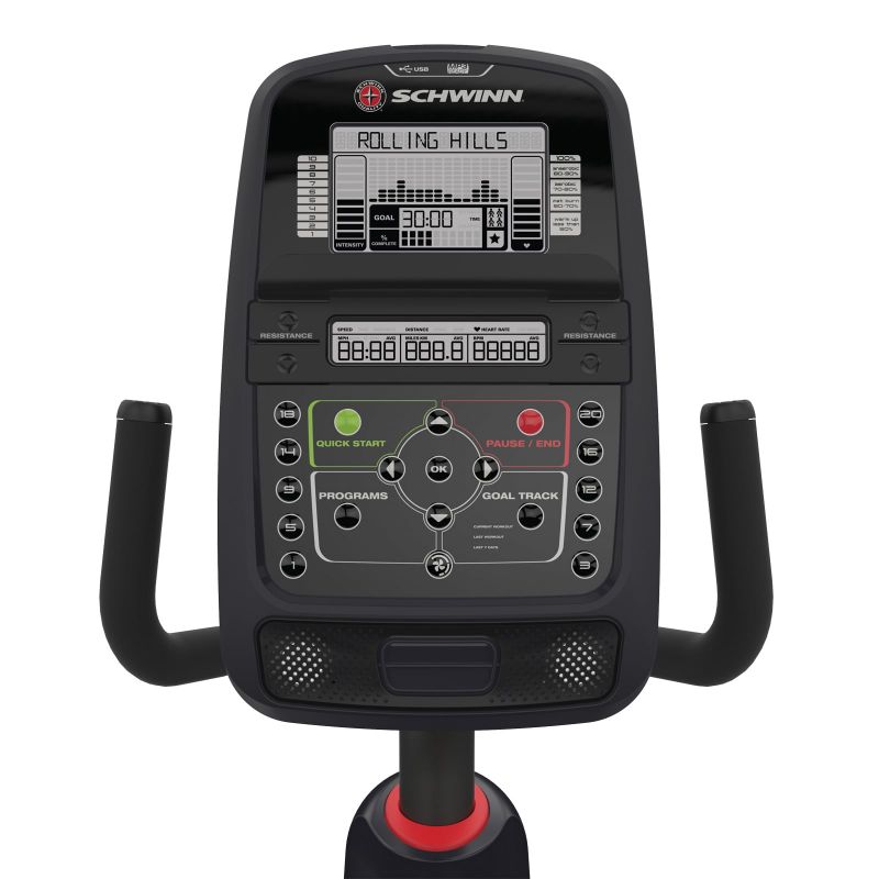 Aplikacje i śledzenie aktywności: możliwość transferu danych treningowych za pośrednictwem portu USB oraz synchronizacja ich ze stronami takimi jak Schwinn Connect™, Under Armour czy MyFitnessPal