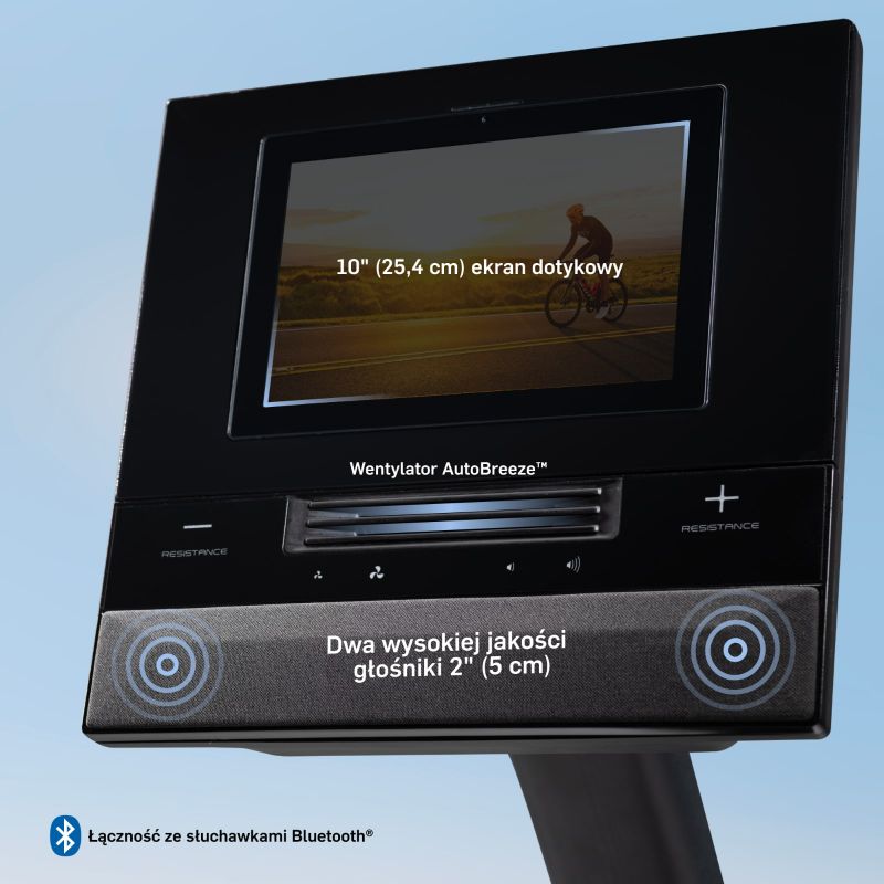 Pomiar pulsu: rower posiada wbudowany odbiornik Bluetooth kompatybilny z napiersiowym pasem telemetrycznym do bezprzewodowego pomiaru pulsu (pas do kupienia osobno)