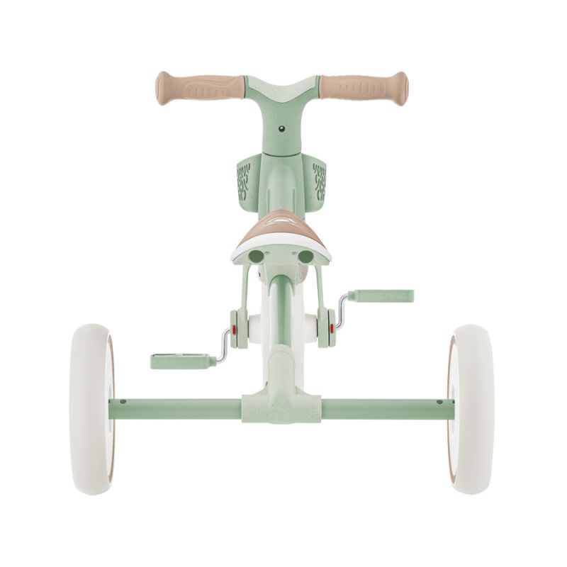 LEARNING TRIKE 2in1 PLUS ECOLOGIC to konwertowalny, 3-kołowy pojazd dla maluchów, który pomaga opanować umiejętności motoryczne i równowagę przez zabawę. Masz dwa sposoby jazdy: treningowy trike (pedałowanie i skręcanie) oraz walking bike (odpychanie bez pedałów) — dzięki temu dziecko płynnie przechodzi od pierwszych prób do samodzielnych przejazdów. Przeznaczony dla ok. 12–36 miesięcy. Model ma 100% beznarzędziową konstrukcję, siodełko z regulacją 2-stopniową, zdejmowane elementy (koszyczek i pedały), trwałą ramę, ergonomiczne chwyty TPR i lekkie koła EVA. Wykonany z GRS i dodatku włókien roślinnych*. *W stosownych komponentach. *W stosownych komponentach. LEARNING TRIKE 2in1 PLUS ECOLOGIC wspiera rozwój: od samodzielnego pedałowania (trike) po odpychanie bez pedałów (biegowy). Dziecko zyskuje pewność, koordynację i równowagę — krok po kroku, w swoim tempie. Przełączanie trybów bez śrub i kluczy. Jednym ruchem zmieniasz moduł tylnej osi: szeroki rozstaw dla trike, węższy dla biegowego — szybko, czysto i intuicyjnie. Siodełko z regulacją (ok. 25,8 lub 27,1 cm od podłoża), dwukolorowe i antypoślizgowe TPE — pewny dosięg stóp i prawidłowa postawa. Pod siedziskiem wbudowany schowek na pedały dla trybu biegowego. Przedni koszyczek TPR na przekąski i drobiazgi można zdjąć. Pedały również są zdejmowane — transformacja jest szybka i bezpieczna, a nieużywane pedały chowasz pod siodełkiem. Lekka rama kompozytowa (obciążenie do 20 kg) wytrzyma codzienne przygody. Chwyty TPR są miękkie dla dłoni i antypoślizgowe — komfortowe nawet przy dłuższych spacerach. Z przodu 200 mm, z tyłu 2 × 180 mm — lekkie, ciche i amortyzujące. Sprawdzą się w domu i na zewnątrz. *W stosownych komponentach.