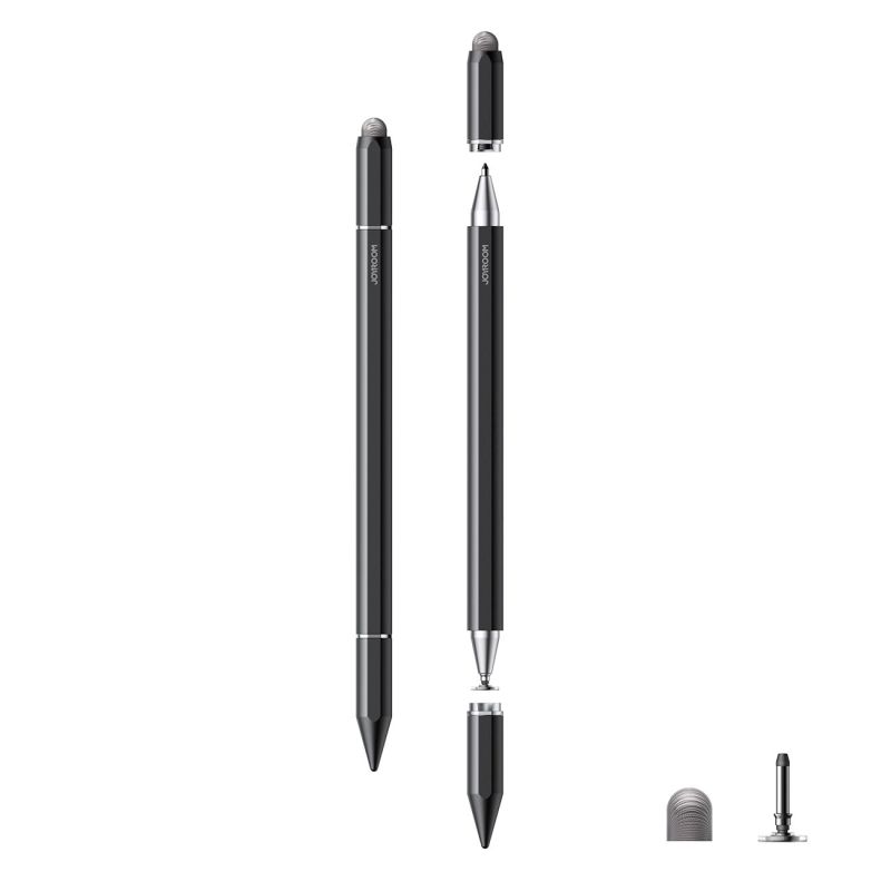 Joyroom JR-BP561 oferuje pełen zestaw narzędzi: końcówkę dyskową do rysowania i szkicowania, gumową do wygodnego sterowania ekranem oraz długopis kulkowy do klasycznych notatek.
