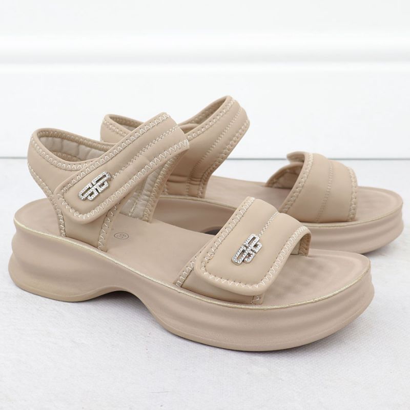 Sandały damskie na grubej podeszwie z rzepami beżowe Potocki 105300
