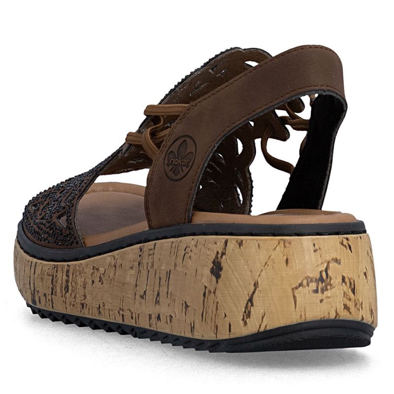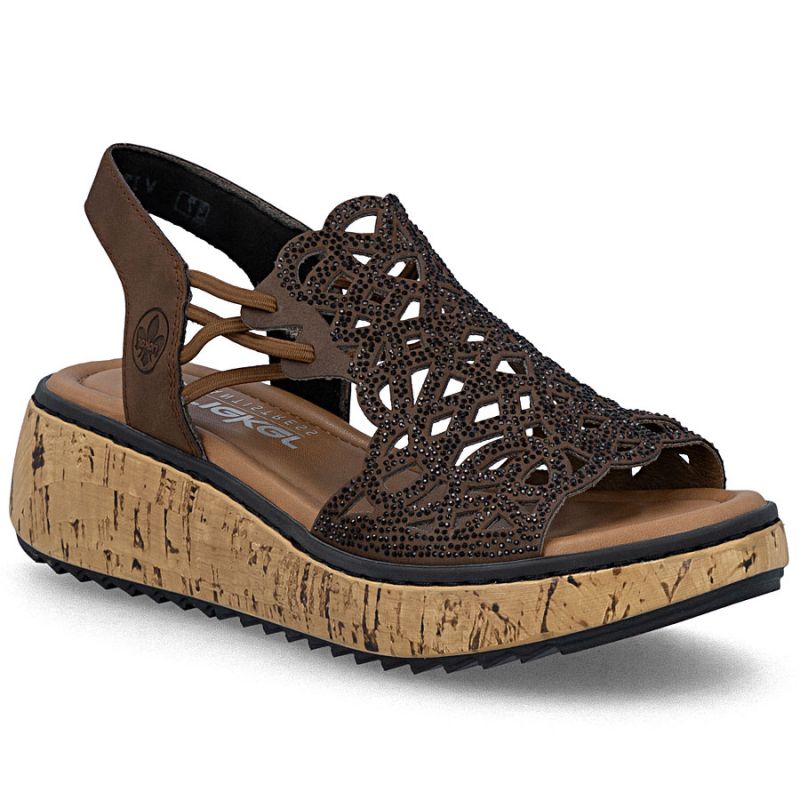 Sandały damskie na koturnie brązowe Rieker V1765-24