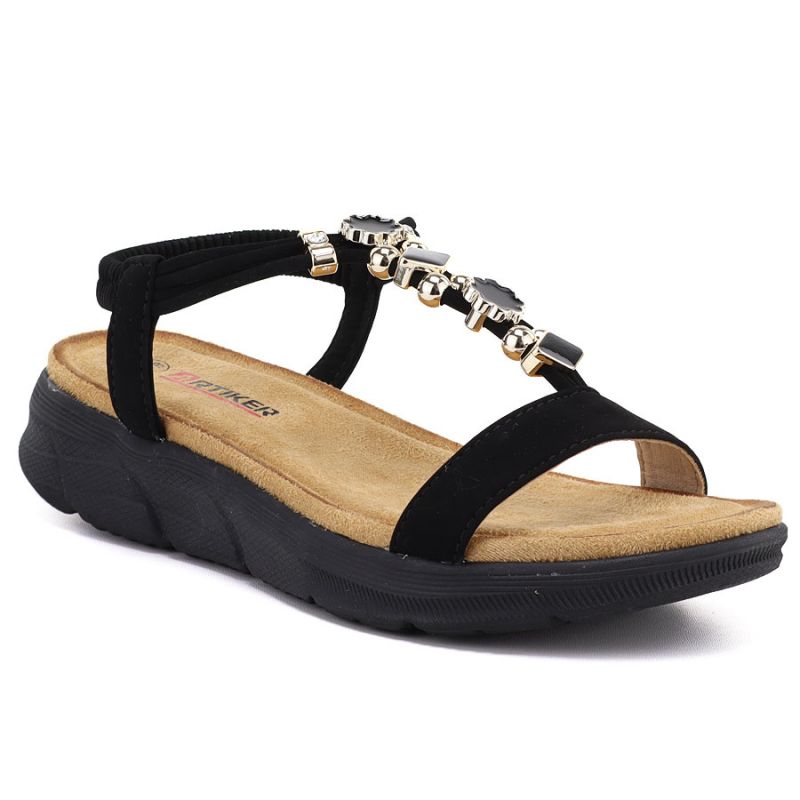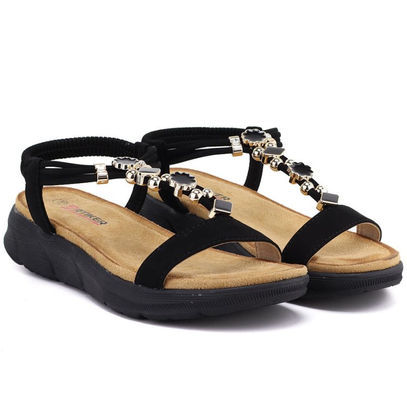 Sandały damskie na koturnie czarne Artiker 58C0007