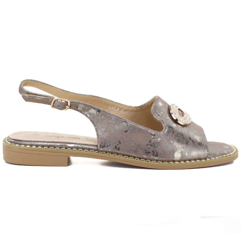 Sandały damskie płaskie z ozdobą pewter S.Barski 61-6040