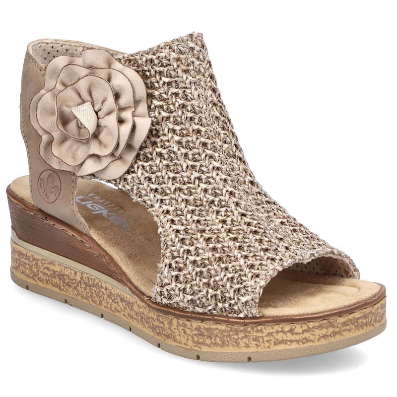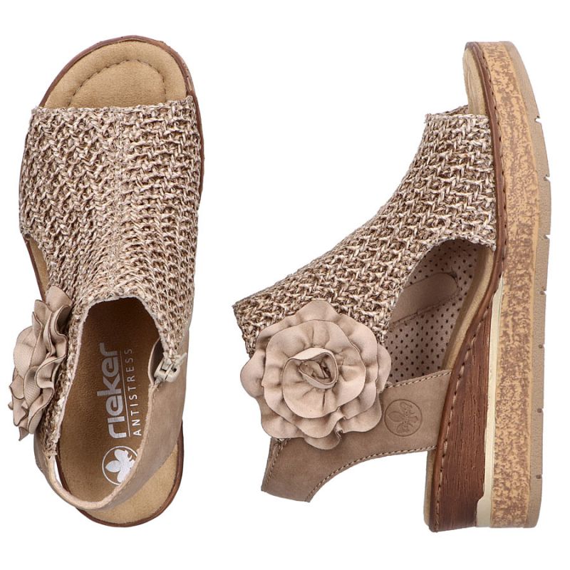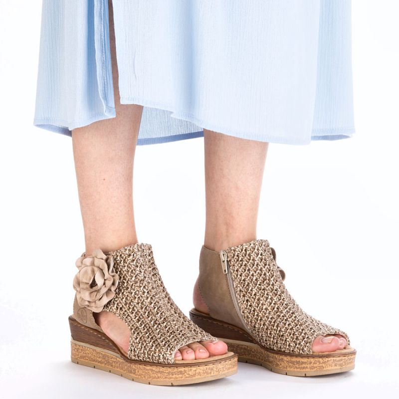 Sandały damskie plecione komfortowe koturn platforma beżowe Rieker 63791-60