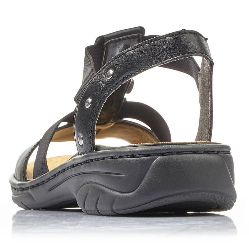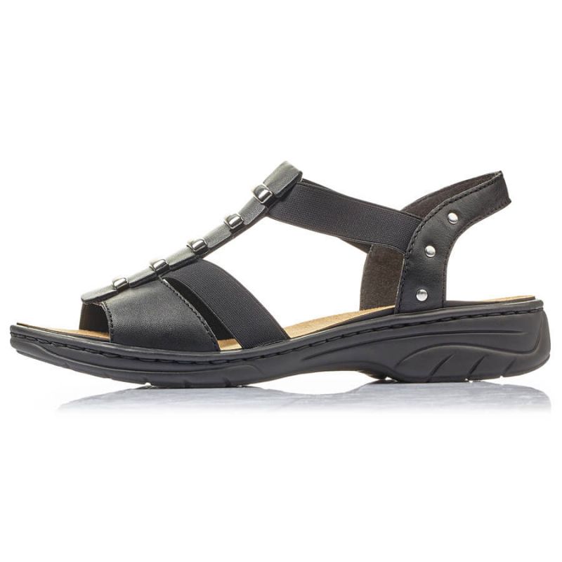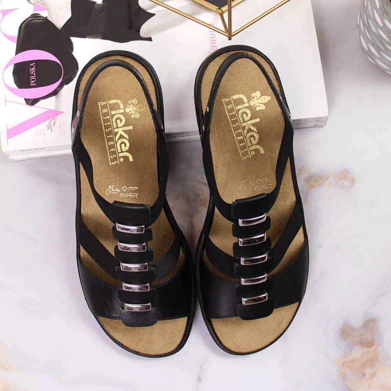 Sandały skórzane damskie rzymianki czarne Rieker 64580