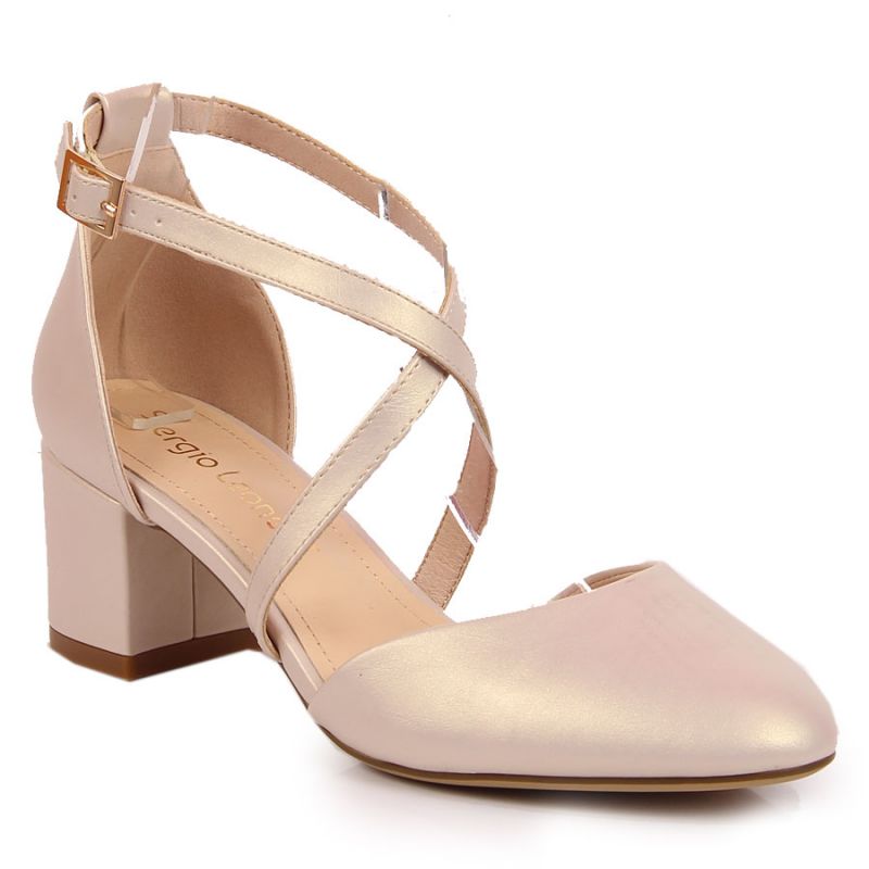 Sandały z paseczkami Sergio Leone W SK365B perłowo beżowe