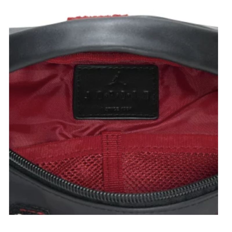 Na froncie umieszczono wyraziste naszywki nawiązujące do Jordana, nadając saszetce dynamiczny, streetwearowy styl.