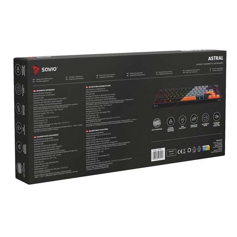 SAVIO KLAWIATURA MAGNETYCZNA ASTRAL BLACK OUTEMU WHITE JADE RGB 3 KOLORY KEYCAPÓW