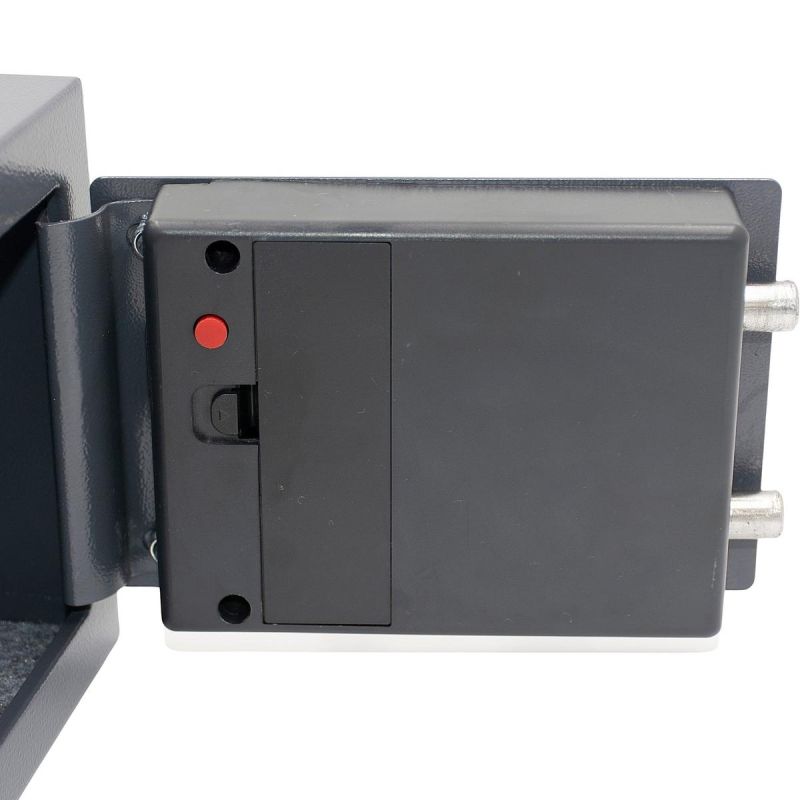 Sejf wyposażony jest w elektroniczny zamek szyfrowy, który pozwala na ustawienie indywidualnego kodu PIN, zapewniając szybki i wygodny dostęp do zawartości. Zamek działa na baterie, a w przypadku ich wyczerpania dostęp można uzyskać za pomocą klucza awaryjnego, co gwarantuje bezpieczeństwo nawet w sytuacjach awaryjnych.