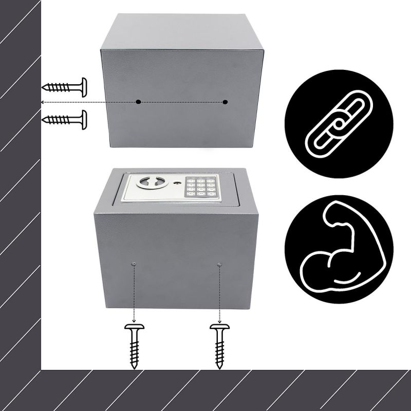 Sejf można zamontować w wybranym miejscu lub po prostu umieścić w dyskretnym miejscu, co zwiększa bezpieczeństwo jego użytkowania. Dzięki prostemu i niezawodnemu zamkowi, dostęp do zawartości jest wygodny, a sejf doskonale sprawdza się w codziennym użytkowaniu.