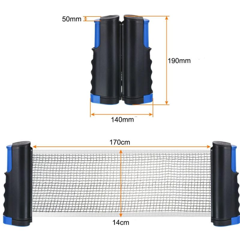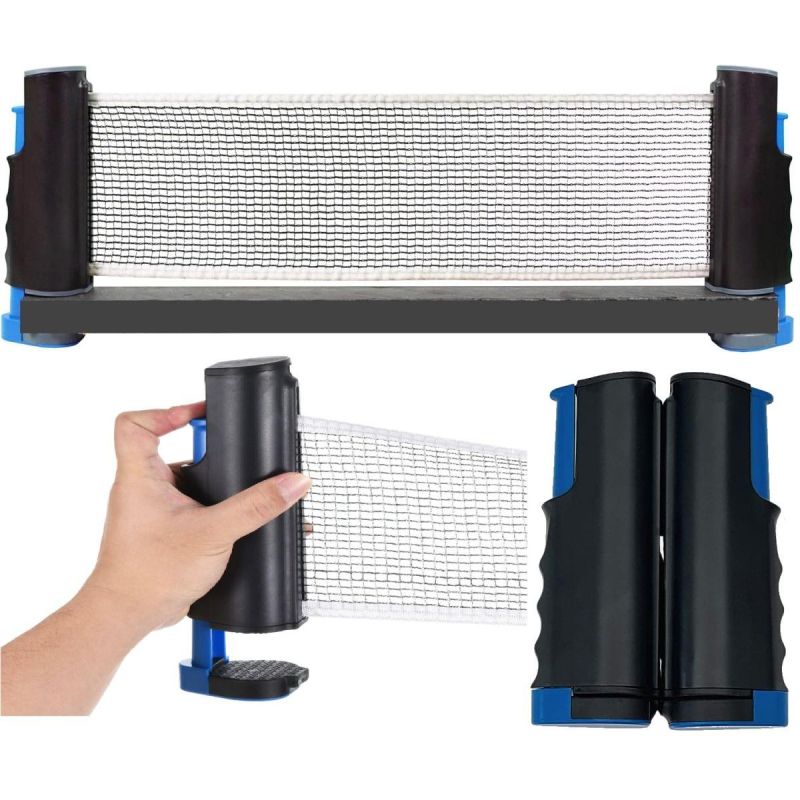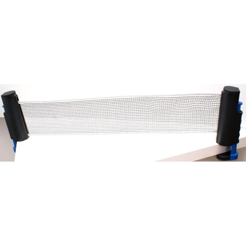 Automatycznie rozsuwana siatka do długości ok. 160 cm, pozwala grać w tenisa stołowego na dowolnej twardej powierzchni w pomieszczeniu lub na zewnątrz! Wystarczy kilka szybkich ruchów i blat o grubości do 3 cm i możesz rozpocząć grę.