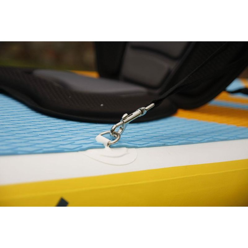 Montaż jest bardzo prosty i szybki, musisz mieć jednak deskę, która jest przystosowana do montażu siedziska kajakowego. Wystarczy wykorzystać fabrycznie zamontowane uchwyty i doczepić do nich siedzisko kajakowe. Proces ten nie zajmie więcej niż parę sekund.