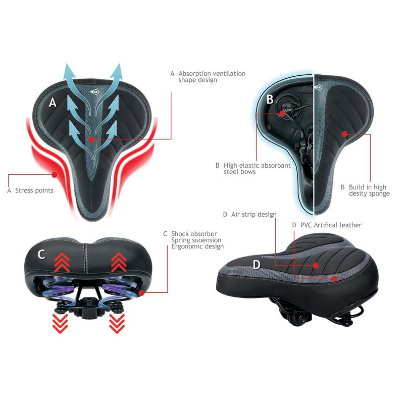 Wygodne, miękkie siodełko to podstawa dobrze wyposażonego roweru. Siodło rowerowe marki DUNLOP zapewni Ci komfort jazdy na co dzień, podczas dojazdów do pracy i powrotów do domu, sprawdzi się też idealnie na rodzinnych przejażdżkach w weekendy. Miękkie siodełko, ze sprężynami dobrze zamortyzuje wstrząsy i nierówności podłoża. Jego zaletą jest to, że idealne nadaje się dla kobiet, jak i mężczyzn. Dedykowane głównie do rowerów miejskich i turystycznych, nadaje się nie tylko do jazdy po mieście, ale również po terenach leśnych i górzystych. Posiada strefę wcięć dla obniżenia nacisku na wrażliwe miejsca i jest bardzo wygodne dzięki idealnemu dopasowywaniu się do pozycji rowerzysty. Jest odporne na warunki atmosferyczne i łatwe do zamontowania. Jego uniwersalne mocowanie sprawdzi się przy każdym typie roweru, a regulacja kąta umożliwi Ci na jego dopasowanie.
