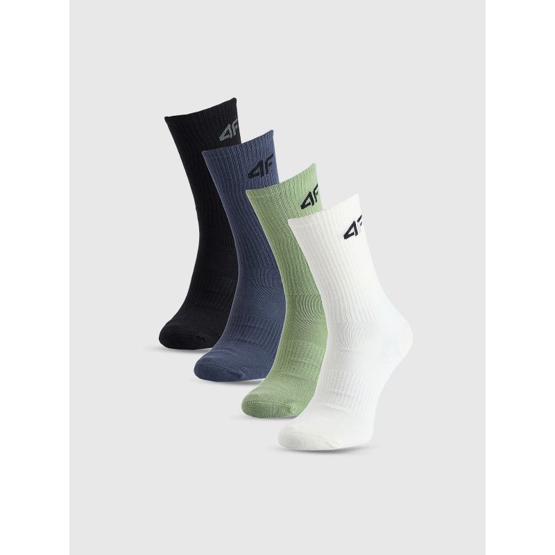Wykonane w 66% z bawełny, są przyjemne w dotyku i trwałe, a dodatek 30% poliamidu zwiększa odporność materiału na rozciąganie i zagniecenia. Subtelne logo 4F na mankiecie dodaje sportowego charakteru. W zestawie znajdują się 4 pary, co czyni go praktycznym i ekonomicznym rozwiązaniem.