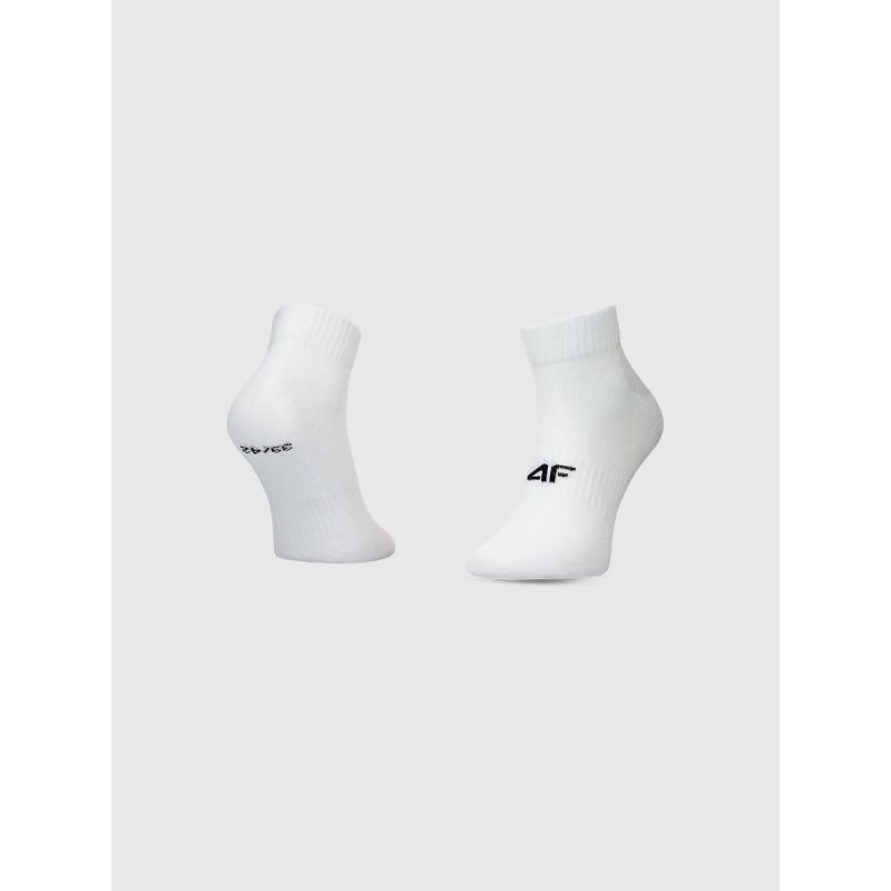 Skarpetki damskie 4F to idealny wybór do codziennych aktywności. Wykonane z miękkich i elastycznych włókien, doskonale dopasowują się do kształtu stopy, zapewniając komfort przez cały dzień. Mają długość za kostkę, dzięki czemu świetnie sprawdzają się w połączeniu z różnymi typami obuwia.