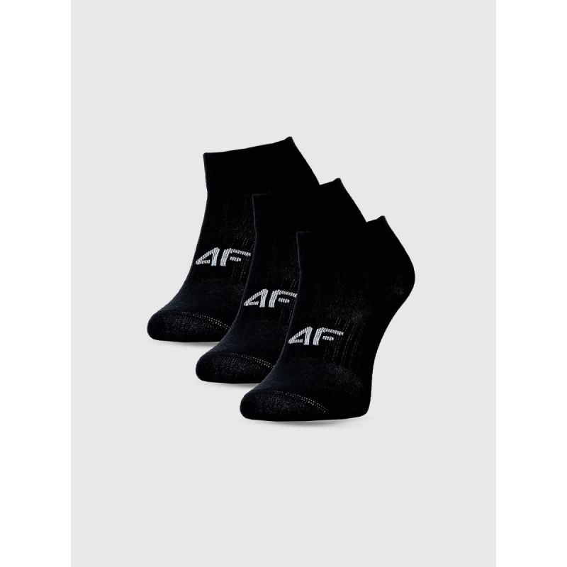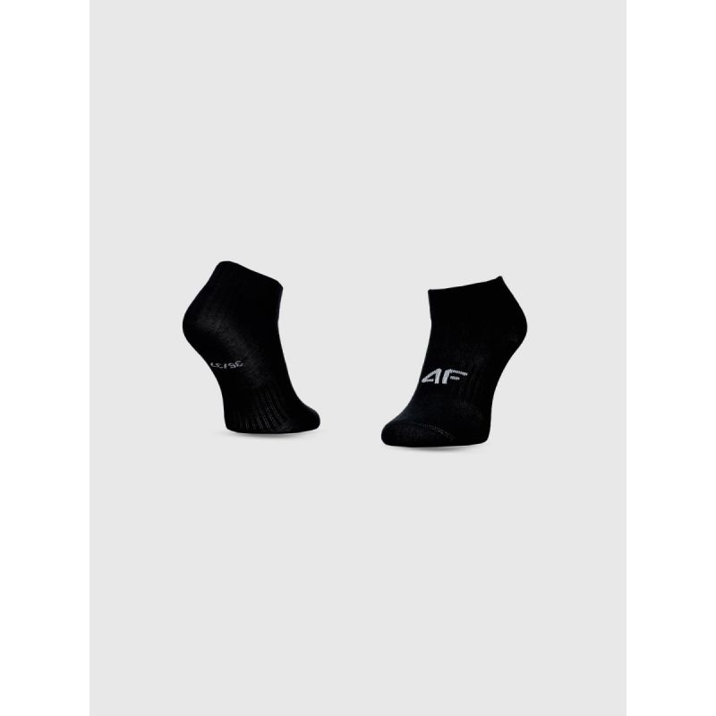 Długość za kostkę sprawia, że skarpetki dodatkowo chronią stopę, a elastyczny materiał ściśle przylega, nie przesuwając się podczas ruchu. Wykonane w 73% z bawełny, są miękkie, trwałe i przyjemne w dotyku, natomiast 24% poliamidu zwiększa odporność na rozciąganie i zagniecenia. Logo 4F na śródstopiu podkreśla sportowy charakter.