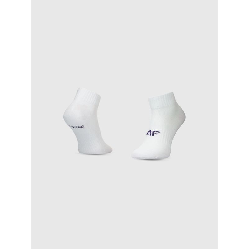 Długość za kostkę sprawia, że skarpetki dodatkowo chronią stopę, a elastyczny materiał ściśle przylega, nie przesuwając się podczas ruchu. Wykonane w 73% z bawełny, są miękkie, trwałe i przyjemne w dotyku, natomiast 24% poliamidu zwiększa odporność na rozciąganie i zagniecenia. Logo 4F na śródstopiu podkreśla sportowy charakter.